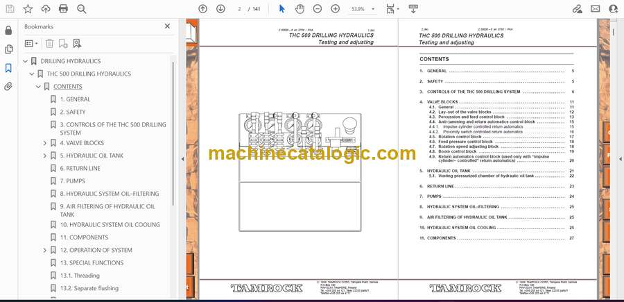 THC 500 Drilling hydraulics; Testhg and adjusting