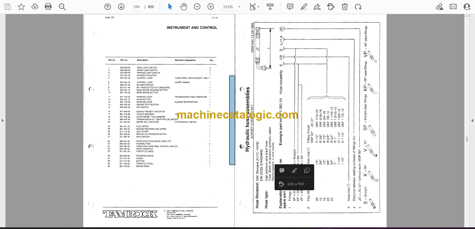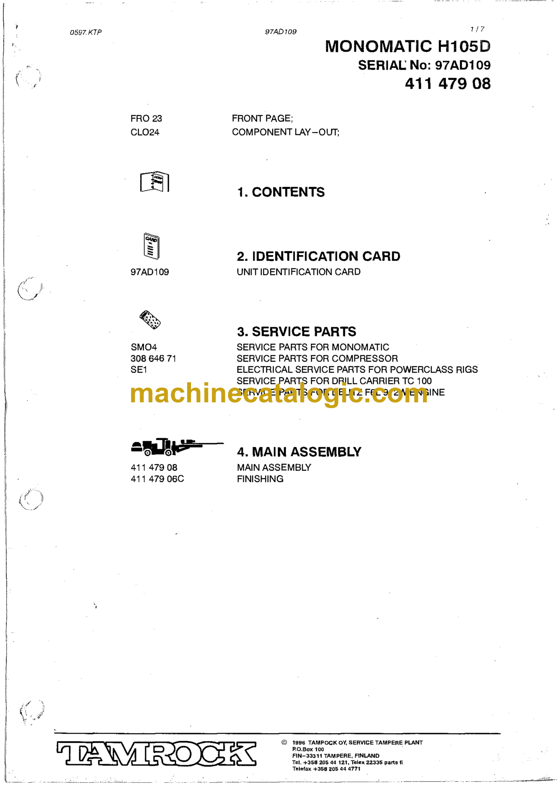 1996 TAMROCK OY, SERVICE TAMPERE PLANT P.O.Box 100