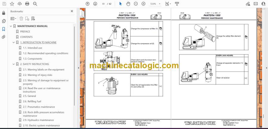 Sandvik Pantera 1500 Full Documents (Service, Operator, Maintenance Manual and Parts Catalog) [104T7077-1]