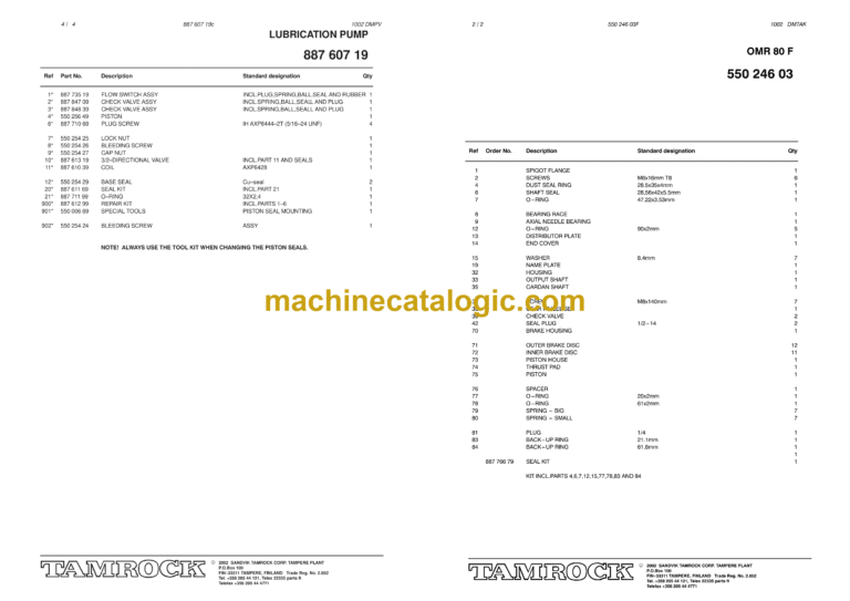 Sandvik Ranger 700-2 Drill Rig Parts Manual (103T5850-1)