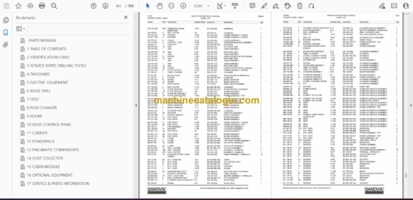 Sandvik Ranger DX800 Drill Rig Parts Manual (39425)