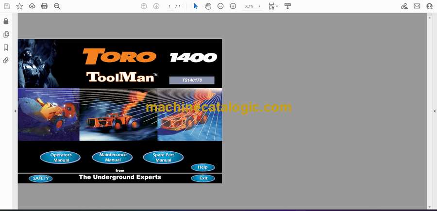 Sandvik Toro 1400 Full Documents (Operator, Maintenance Manual and Parts Catalog) [T5140178]