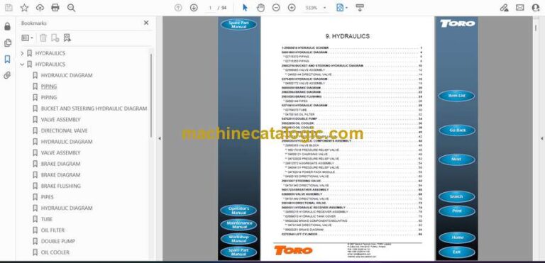Type of Document: Full Toolman Manual (Service, Operator, Maintenance Manual and Parts Catalog)