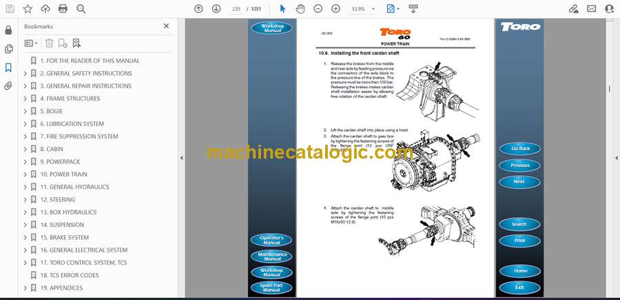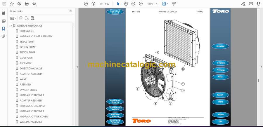 Type of Document: Full Toolman Manual (Service, Operator, Maintenance Manual and Parts Catalog)