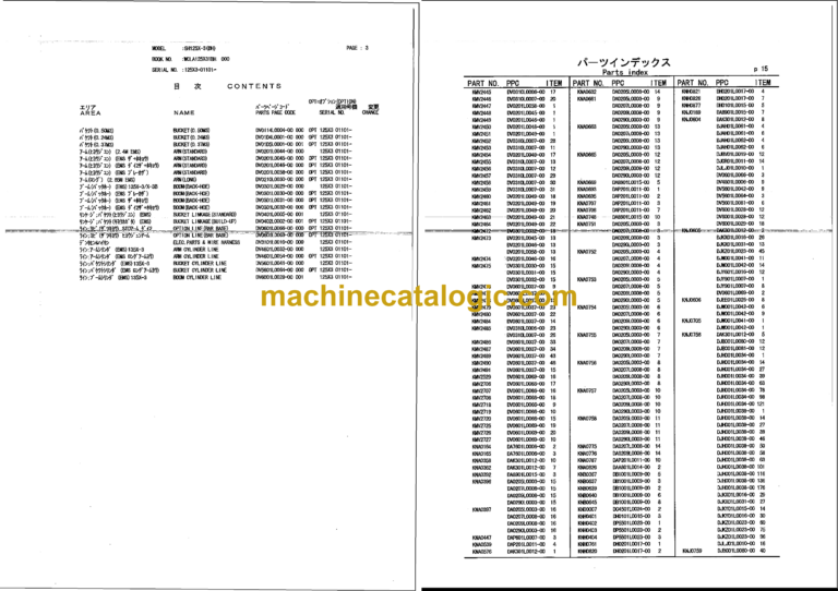 Sumitomo SH125X-3, SH125XU-3 Hydraulic Excavator Index: