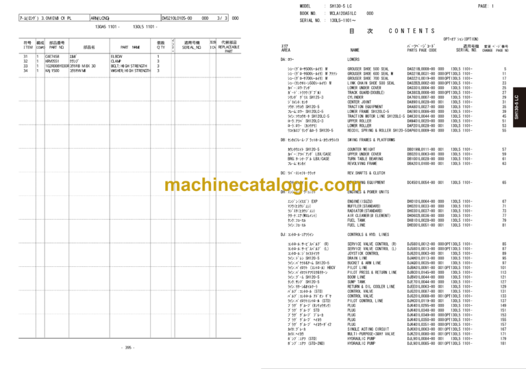 SH130-5BH, SH130-5BB, SH130-5LC Hydraulic Excavator Index: