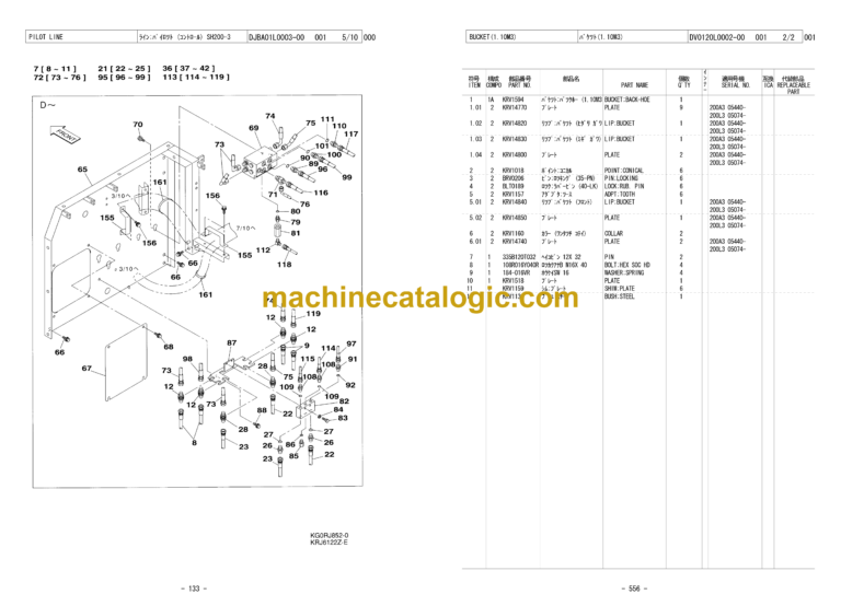 バケツト(ヨコピンツ-ス1.00M3) BUCKET(LEVEL PIN 1.00M3) DV01H9L0001-00 001 OPT 200A3 05374- *