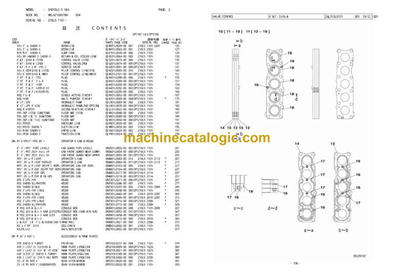 Sumitomo SH210LC-5, SH210LC-5LR Hydraulic Excavator Index:
