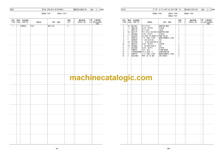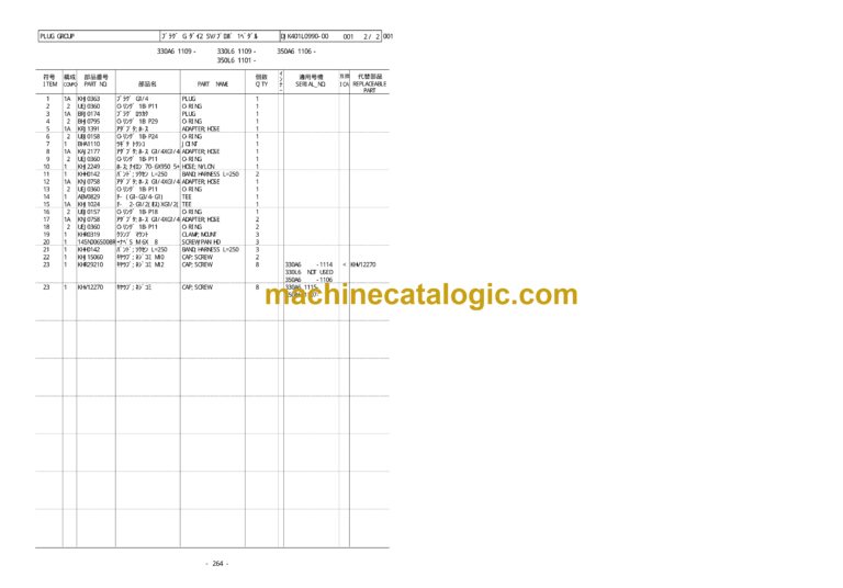 Sumitomo SH330-5, SH330LC-5, SH350HD-5, SH350LHD-5 Hydraulic Excavator Parts Manual (WCL3306-0W)