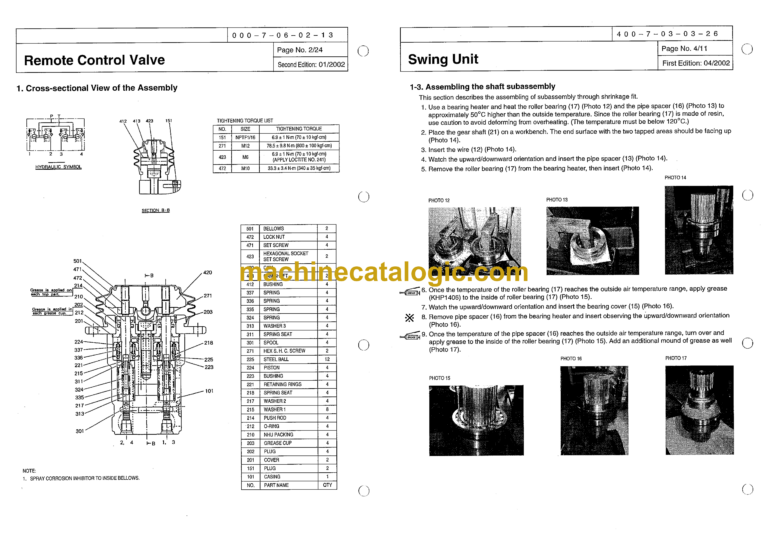 7. Disassembling and Maintenance Instructions for Major Hydraulic Components