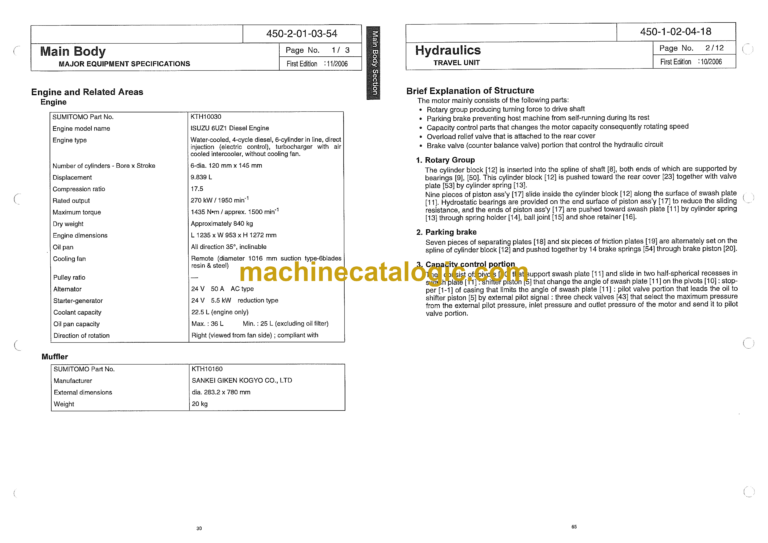 Sumitomo SH450HD-3B Hydraulic Excavator Index: