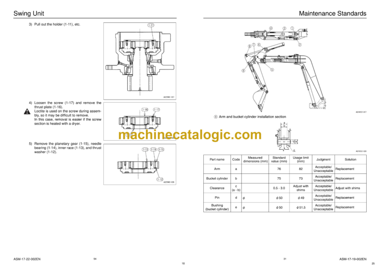 Removal and Installation of Arm Cylinder………………………………………………………….5