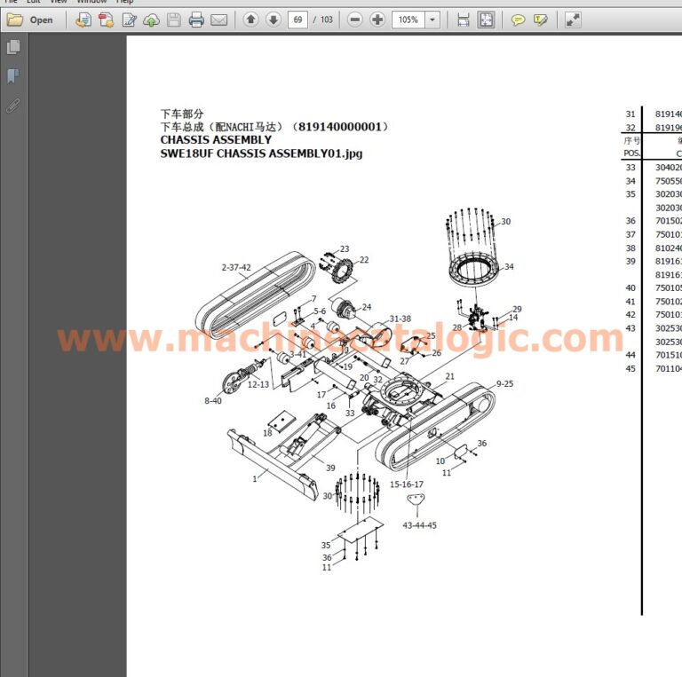 Sunward SWE18UF Hydraulic Excavator Parts Manual