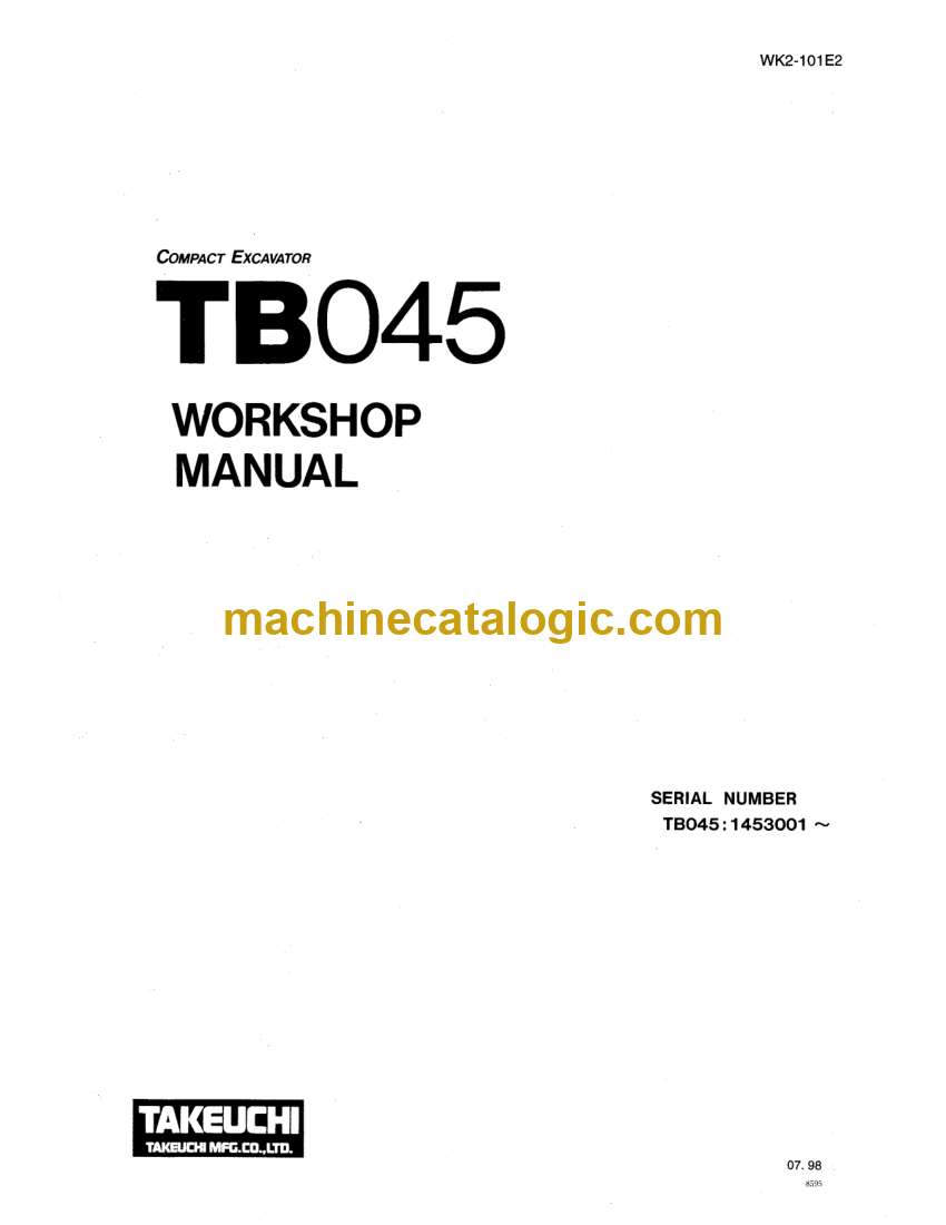 The TB045 is a compact excavator that spends its life in dirt and rock—trenching, backfilling, loading trucks on tight jobsites. This workshop manual is what I’d pull out when something needs more than a quick look: it walks you through how to strip, inspect, and correctly refit major components so the machine goes back to work without comebacks. For example, if a boom function gets weak or erratic, I’d use this to trace the hydraulic circuit, isolate the suspect valve or cylinder, and then follow the proper reassembly and testing sequence.