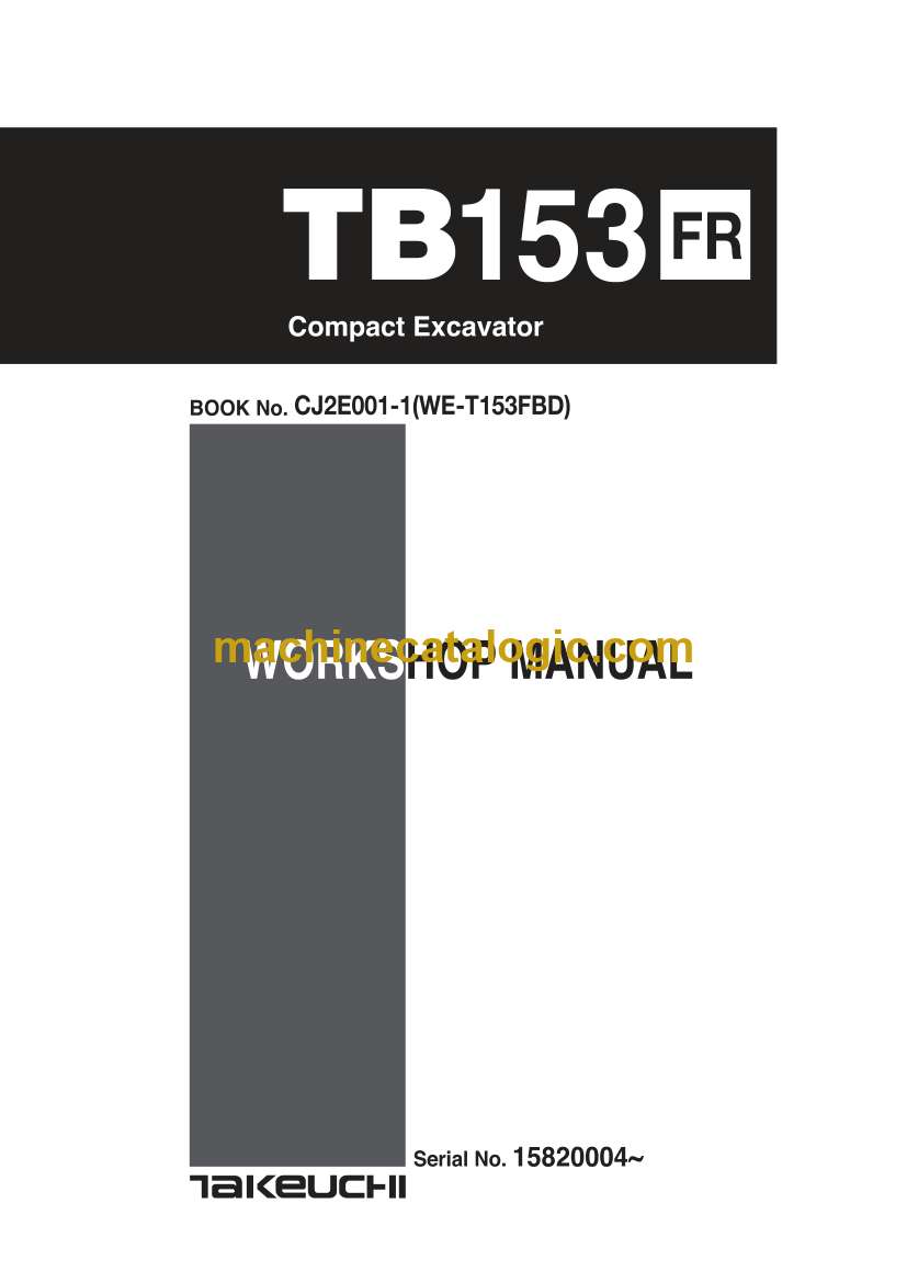 Takeuchi TB153FR Compact Excavator Workshop Manual (CJ2E001-1) (SN 15820004_)