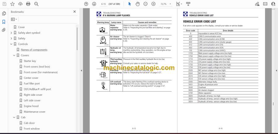 On a big machine like the Takeuchi TB2150, you’re usually working in tight, rough jobsites—deep trenching, lifting heavy pipe, loading trucks on uneven ground. This operators manual is what I’d keep handy to run the machine correctly and to understand how it should behave under load. If, for example, your boom starts dropping slowly when you hold it up with a load, this is the document I’d use to trace the function, check the right controls and modes, and decide whether it’s an operating issue or a hydraulic problem.