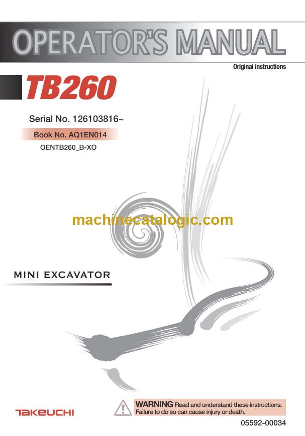Takeuchi TB260 Mini Excavator Operators Manual (AQ1EN014)