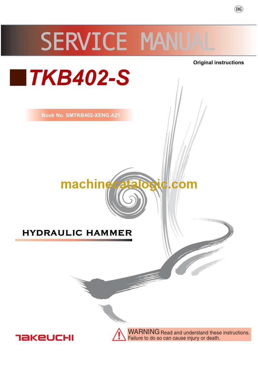 On a breaker like the Takeuchi TKB402-S, you’re pounding through concrete, rock, and frozen ground all day, usually in dust, mud, and vibration. This service manual is what I’d keep handy when the hammer starts losing impact, running hot, or leaking around the tool bushings. It walks you through how to trace a hydraulic or mechanical issue step by step so you confirm the real fault before you pull the hammer off the carrier or start ordering expensive parts.