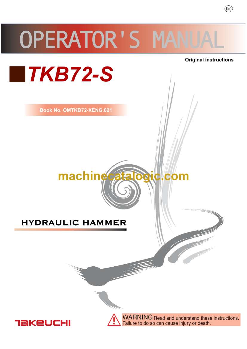 On a hammer like the Takeuchi TKB72-S, you’re usually breaking concrete, rock, or asphalt on tight jobsites, often on uneven ground with limited visibility around you. This operators manual is what I’d keep handy to understand how the hammer should behave under load, how to set it up on the carrier properly, and what to check before and after a shift. If the hammer starts striking weakly or overheating while you’re trenching along a curb line, this is the book I’d use to verify operating technique, daily inspections, and basic fault isolation before calling in major service.