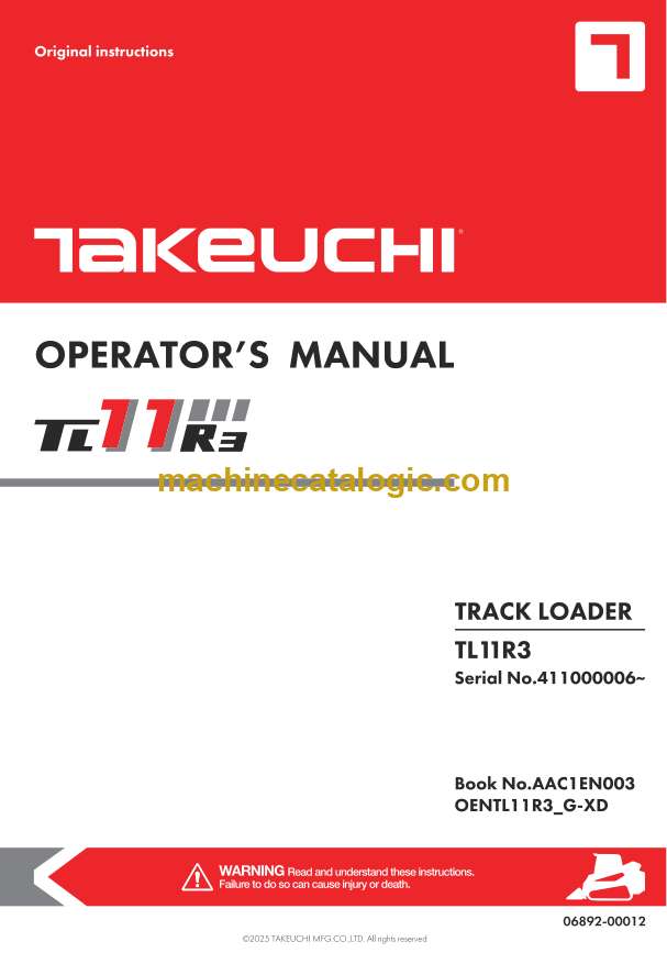 Takeuchi TL11R3 Track Loader Operators Manual (AAC1EN003)