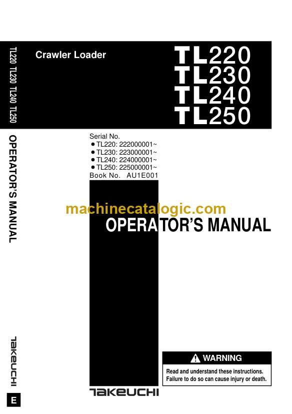 Model: TL220, TL230, TL240, TL250 Crawler Loader