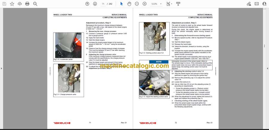 A TW50 spends its life in tight yards, small construction sites, and snow work, so downtime hurts right away. This service manual is what I’d pull out when I need to trace a hydraulic or driveline problem step by step instead of guessing. For example, if the loader arms are creeping down or the travel feels weak, this book walks you through how to verify the fault, isolate the bad circuit, and then strip and rebuild only what’s actually failed.