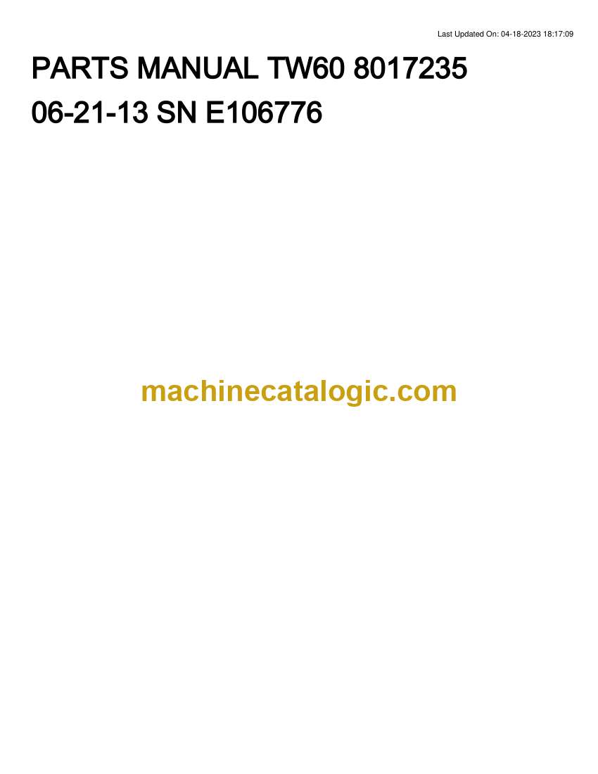 A TW60 wheel loader usually lives in the dirt—yard work, small quarries, farm lots, snow, tight construction sites. This parts manual helps you trace every assembly on the machine down to the last washer so you can order the right stuff once, not three times. Say you’ve got the front end apart chasing a sloppy quick coupler; this lets you isolate the exact bushings, pins, and snap rings instead of guessing off a blurry photo online.
