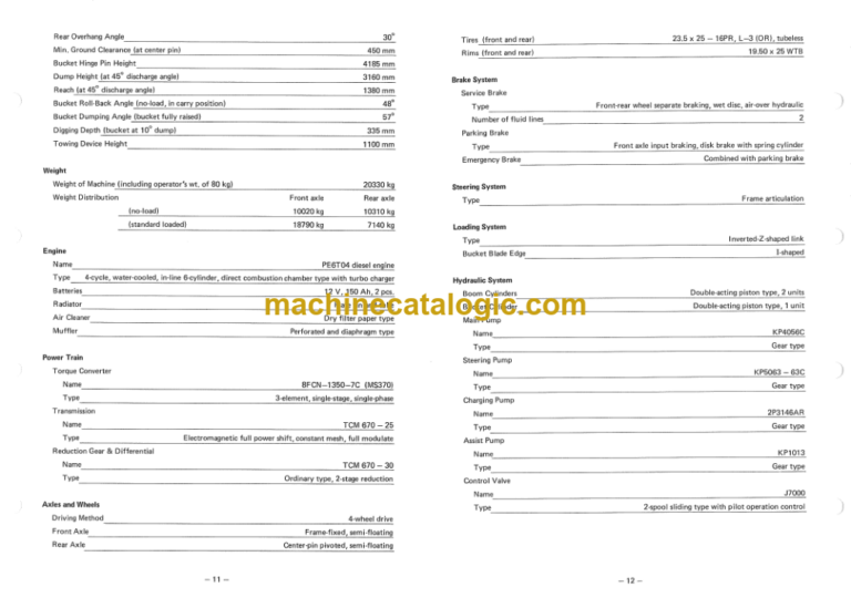 TCM Model 850, 850-2, 860, 860-2, 870, 870-2 Wheel Loader Shop manual