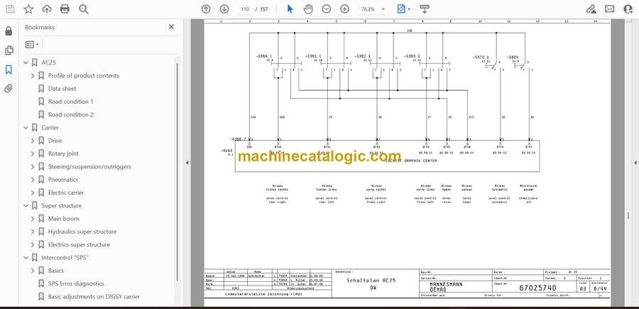 The Terex AC25 is a compact all-terrain crane designed for urban job sites and tight maneuvering. This Technical Training Manual helps operators and technicians understand boom operation, steering modes, load distribution, hydraulic behavior, and the crane’s electronic safety systems. It breaks down how the crane reacts when lifting in confined areas, making it ideal for training environments.