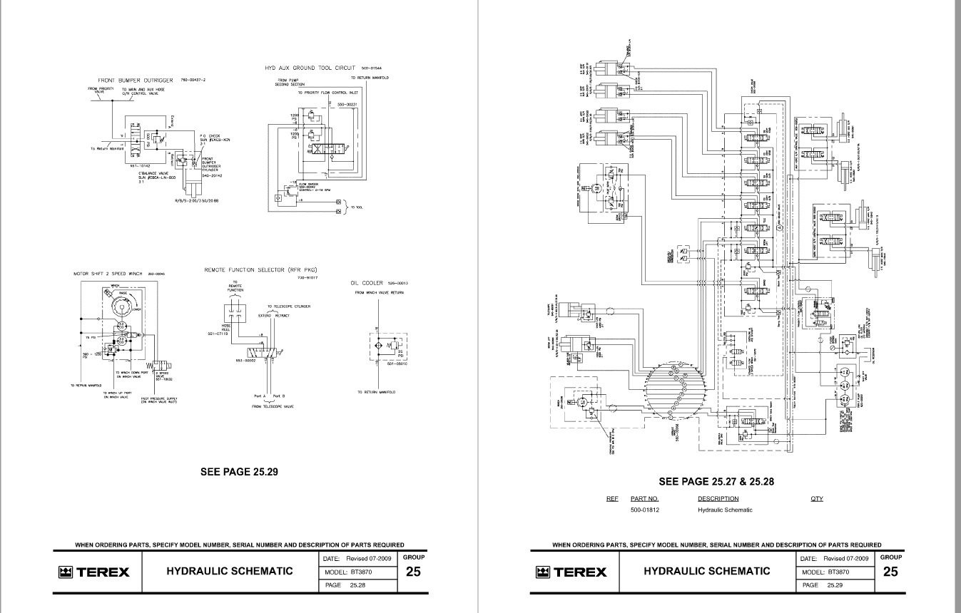 The Terex BT3870 Crane is designed for flexible lifting operations in construction and field services. This Parts Manual provides exploded diagrams of the boom sections, slewing gear, outriggers, hydraulic components, and structural elements. It assists technicians in identifying every bolt, pin, bearing, cylinder, and hydraulic valve required for accurate part replacement.