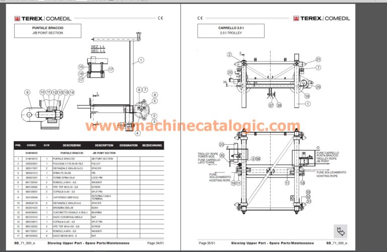 Type of Documents: Erection, Use, Maintenance, Spare Parts Manual