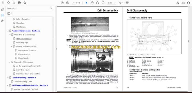 The Terex HPR4519 and HPR5123 Hydraulic Rock Drills are percussion-style drilling systems used in mining and construction environments. This Service Manual explores percussion assembly behavior, lubrication paths, rotation control, hydraulic pressure regulation, and feed system coordination. It’s tailored for technicians diagnosing torque loss, weak impact force, overheating percussion modules, or irregular penetration speed.