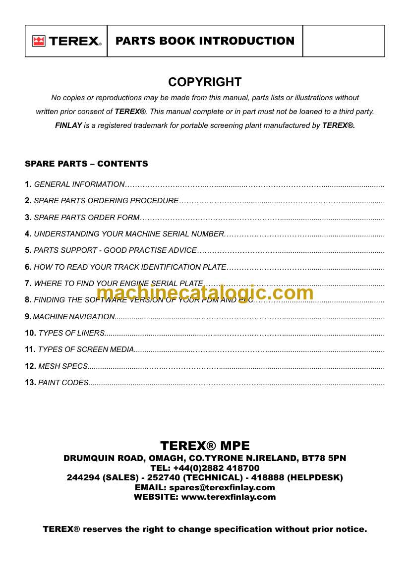 The Terex J1175 Jaw Crusher is a robust, high-output crushing unit used in quarries, mining operations, and heavy demolition work. This Parts Manual maps out every key assembly, including the jaw chamber, feeder, conveyor system, hydraulic adjusters, and drivetrain components. Exploded diagrams help technicians identify each part with precision, from jaw wedges and toggle plates to bearings and hydraulic fittings.