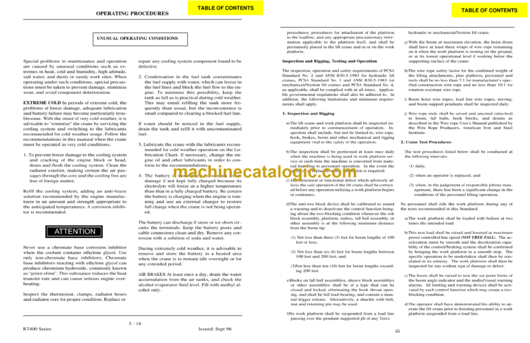 Terex RT400 Series Operator and Maintenance Manual (12261-202)