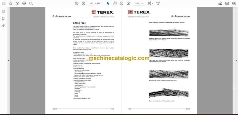The Terex RT45 and RT45L Wheeled Cranes are designed for mobility and reliable lifting power in construction, utility, and field environments. This Operation and Maintenance Manual walks through daily setup procedures, boom and winch operation, steering behavior, hydraulic patterns, and long-term maintenance tasks. Technicians depend on it when diagnosing brake fade, hydraulic drift, or inconsistent boom speed.
