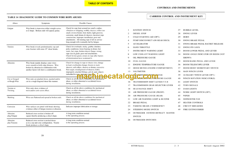 Terex RT500 Series Crane Index: