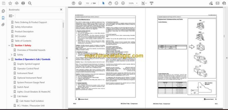 The Terex SKS Series Infinity Drill is designed for large-scale blasthole drilling where accuracy and mechanical endurance matter. This Service Manual details the drill’s rotary drive assembly, mast support structure, hydraulic feed functions, lubrication circuits, and drivetrain sequencing. It is especially valuable when diagnosing erratic drill penetration or air system load fluctuations.
