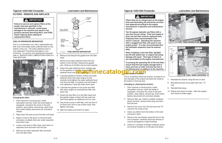 Tigercat 1045, 1055 Forwarder Service Manual (10450101 – 10450300)