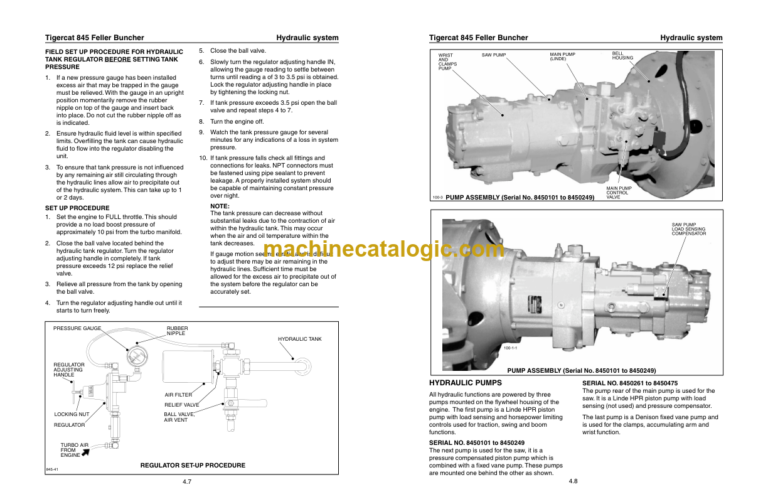 Tigercat 845 Feller Buncher Service Manual (8450101 – 8450475)