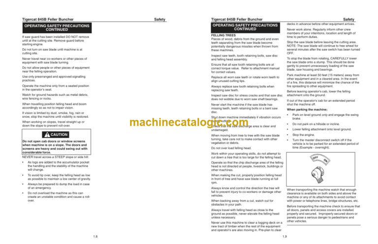 Tigercat 845B Feller Buncher Service Manual (8450501 – 8451499)