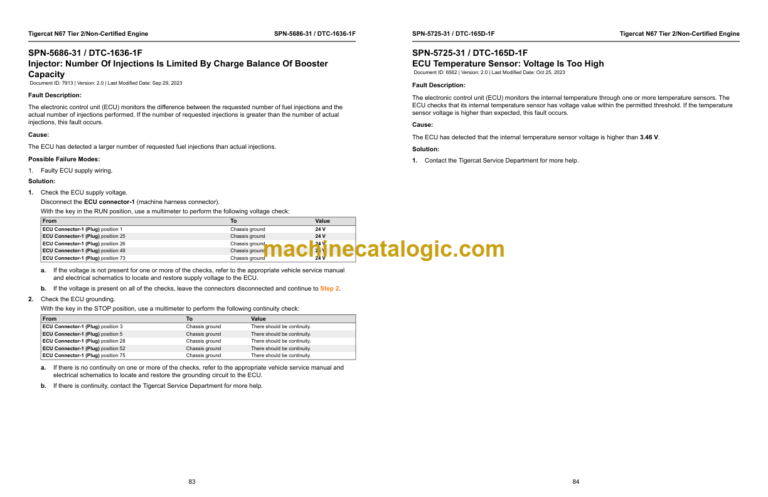 Tigercat N67 Tier 2 Non-Certified Engine Troubleshooting Manual (74311A)