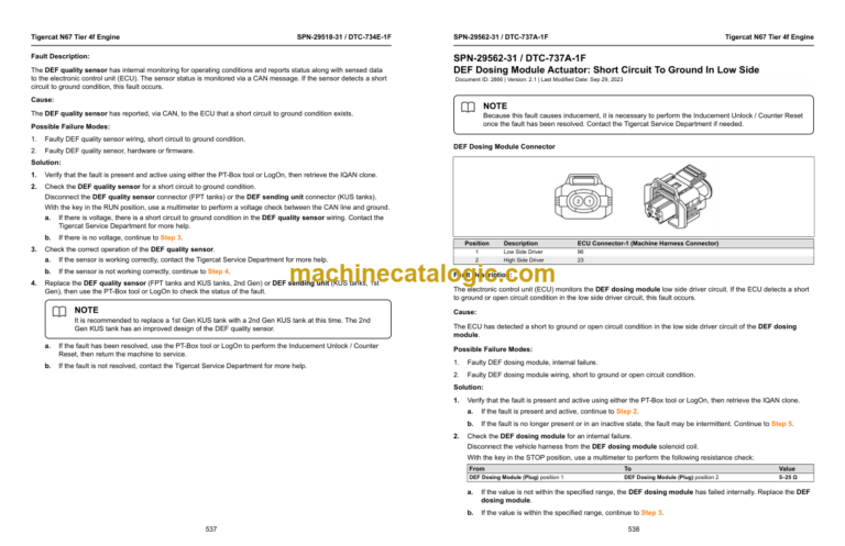 Tigercat N67 Tier 4F Engine Troubleshooting Manual (74312A)