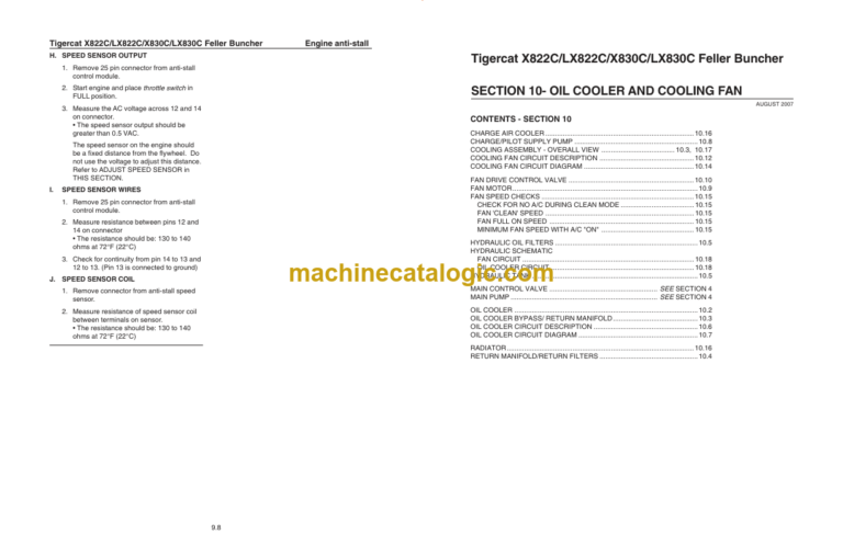 Tigercat X822C, LX822C, X830C, LX830C Feller Buncher INDEX: