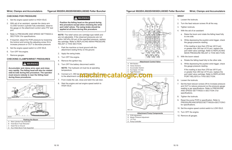 Tigercat X822D, LX822D, X830D, LX830D Feller Buncher INDEX: