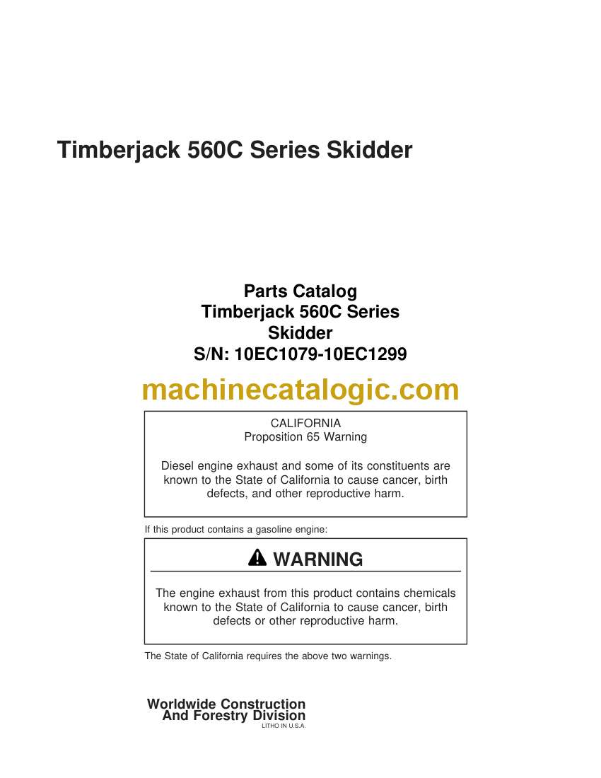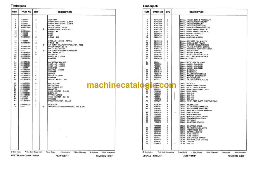 Timberjack 560C Series Skidder Parts Catalog (WCF295260)