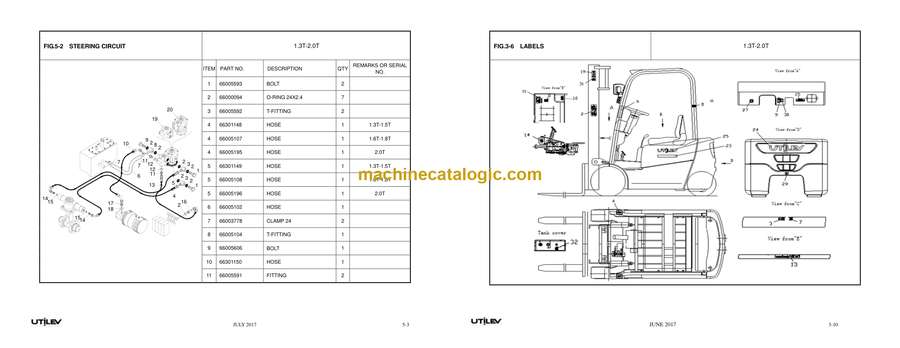 Utilev UT13PTE, UT15PTE, UT16PTE, UT18PTE, UT20PTE Forklift Parts Manual