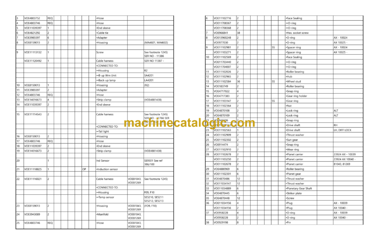 Volvo A35D Articulated Hauler Dump Truck Parts Manual