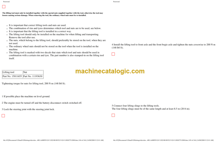 Transporting the machine 85