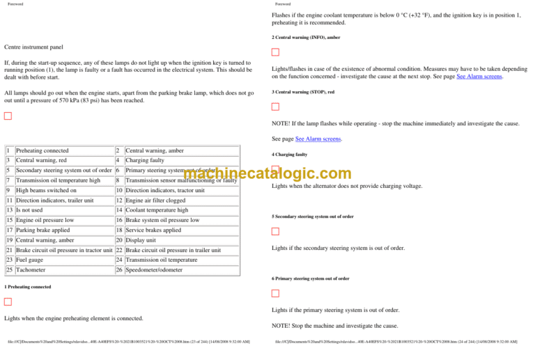 Steering/hydraulic system, specifications 187