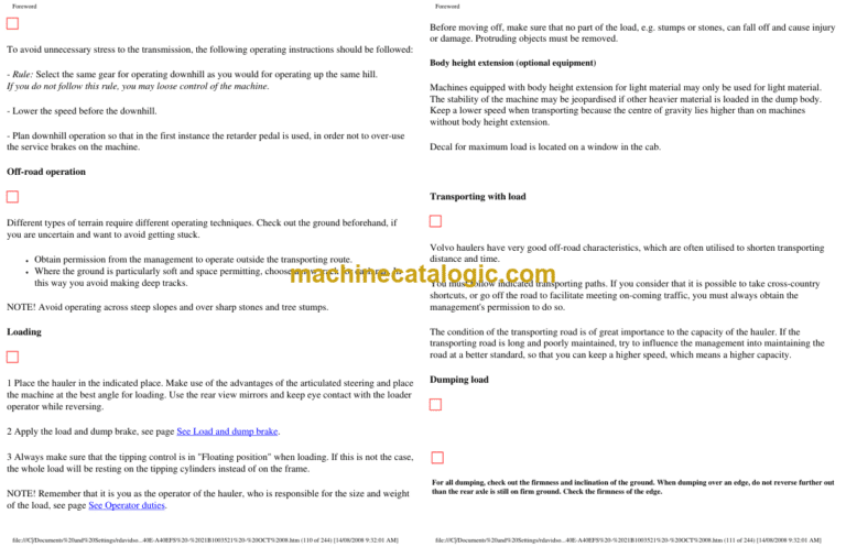 Model: A35E, A35E FS, A40E, A40E FS Articulated Dump Truck